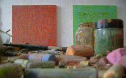 Das Erforschen und Experimentieren mit dem Papier sind zwei wichtige Aspekte im Arbeitsprozess von Manu Wurch. Die entscheidende Entdeckung war, nicht die Tusche auf den Träger aufzubringen, sondern den Träger in die Tusche zu tauchen. Manu Wurch faltet Papierbögen zu kleinen Papierheften zusammen und tunkt sie in ein Becken mit Tusche. Das Papier saugt die Tusche auf. Je nachdem wie getaucht wurde, entsteht eine Tuschestruktur, die durch das Öffnen des Papierheftes sichtbar wird.